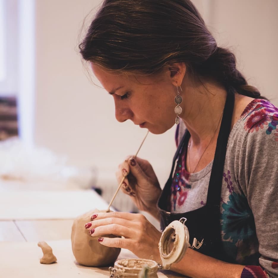 Мастер всегда рядом — подскажет, поможет и направит. Даже если вы никогда не держали глину в руках, всё получится: процесс понятный, структура продуманная, а у нас большой опыт обучения и личные сессии повышения квалификации каждый год.